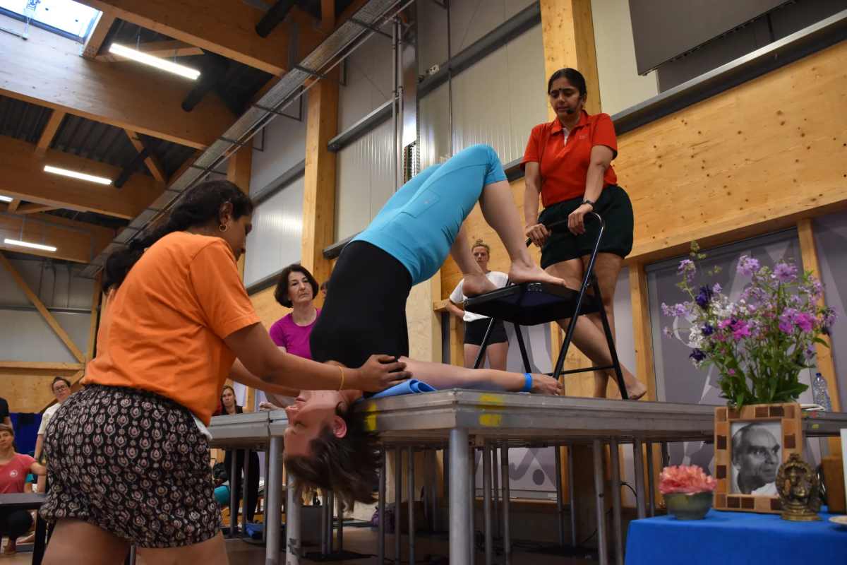 Here are some pictures to remember this wonderful moment of learning and practice with Abhijata Iyengar, whom we warmly thank for the generosity of her teaching!